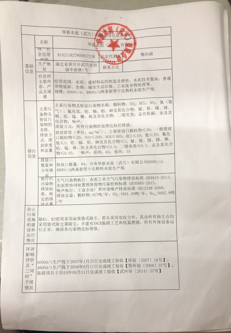 4、華新水泥(武穴)有限公司二季度污染源監(jiān)測報(bào)告