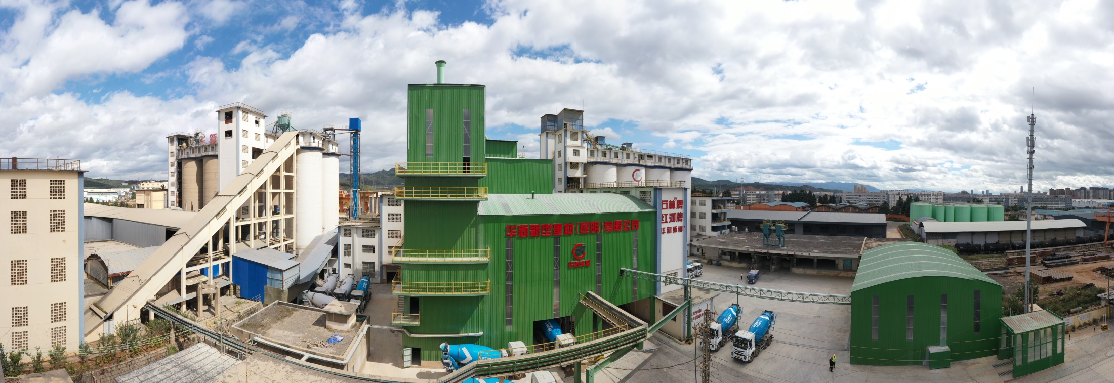 華新新型建材(昆明)有限公司,建設(shè)綠色高性能預(yù)拌混凝土攪拌站,配備2*240兩條生產(chǎn)線,攪拌樓站及輸送實施采用全封閉工藝,先進的砂石分離系統(tǒng),廢水、廢渣循環(huán)綜合利用,實現(xiàn)環(huán)保、綠色、生產(chǎn)零排放。