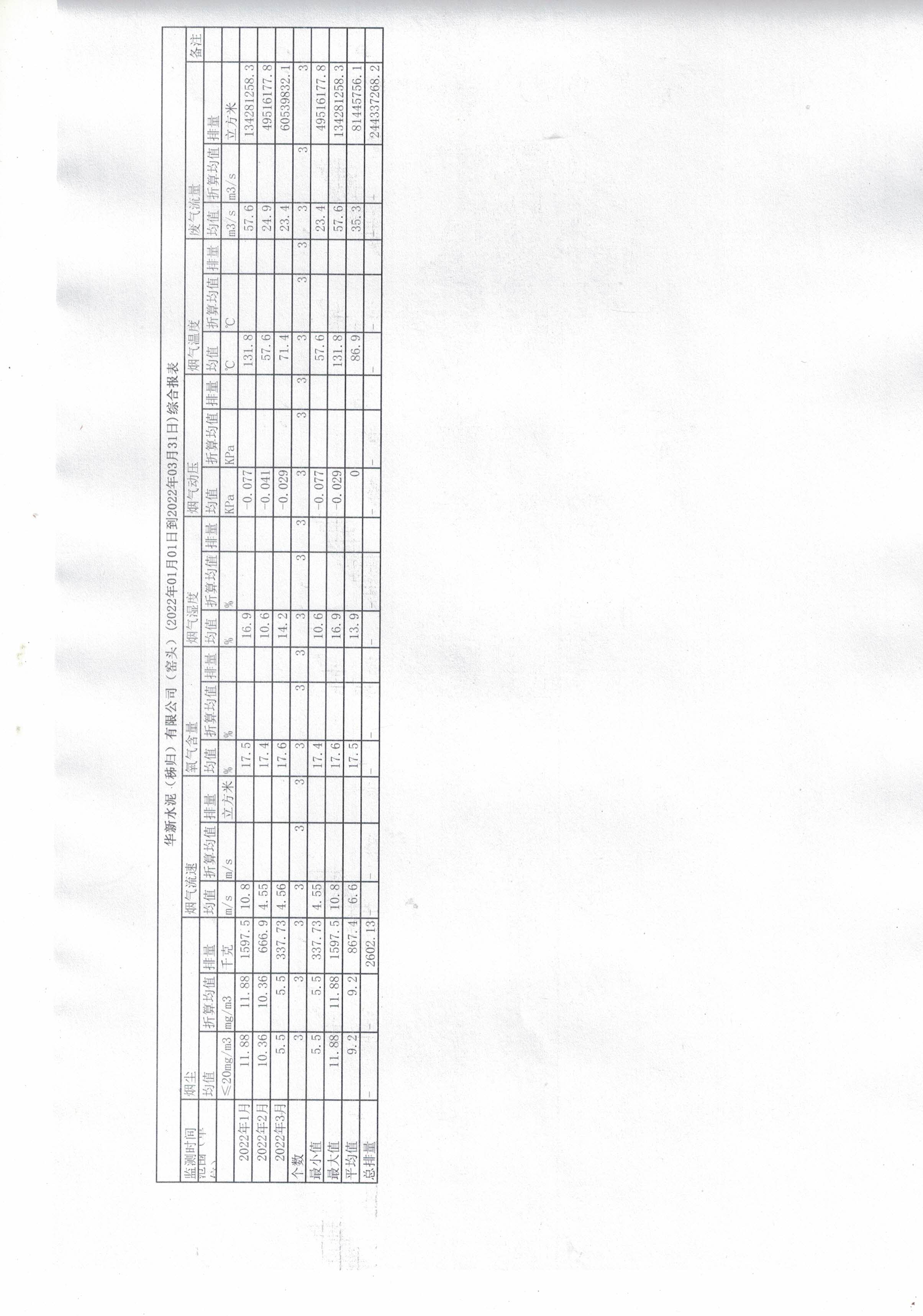 9.華新水泥(秭歸)有限公司-窯尾(2022年01月01日到2022年03月31日)綜合報表