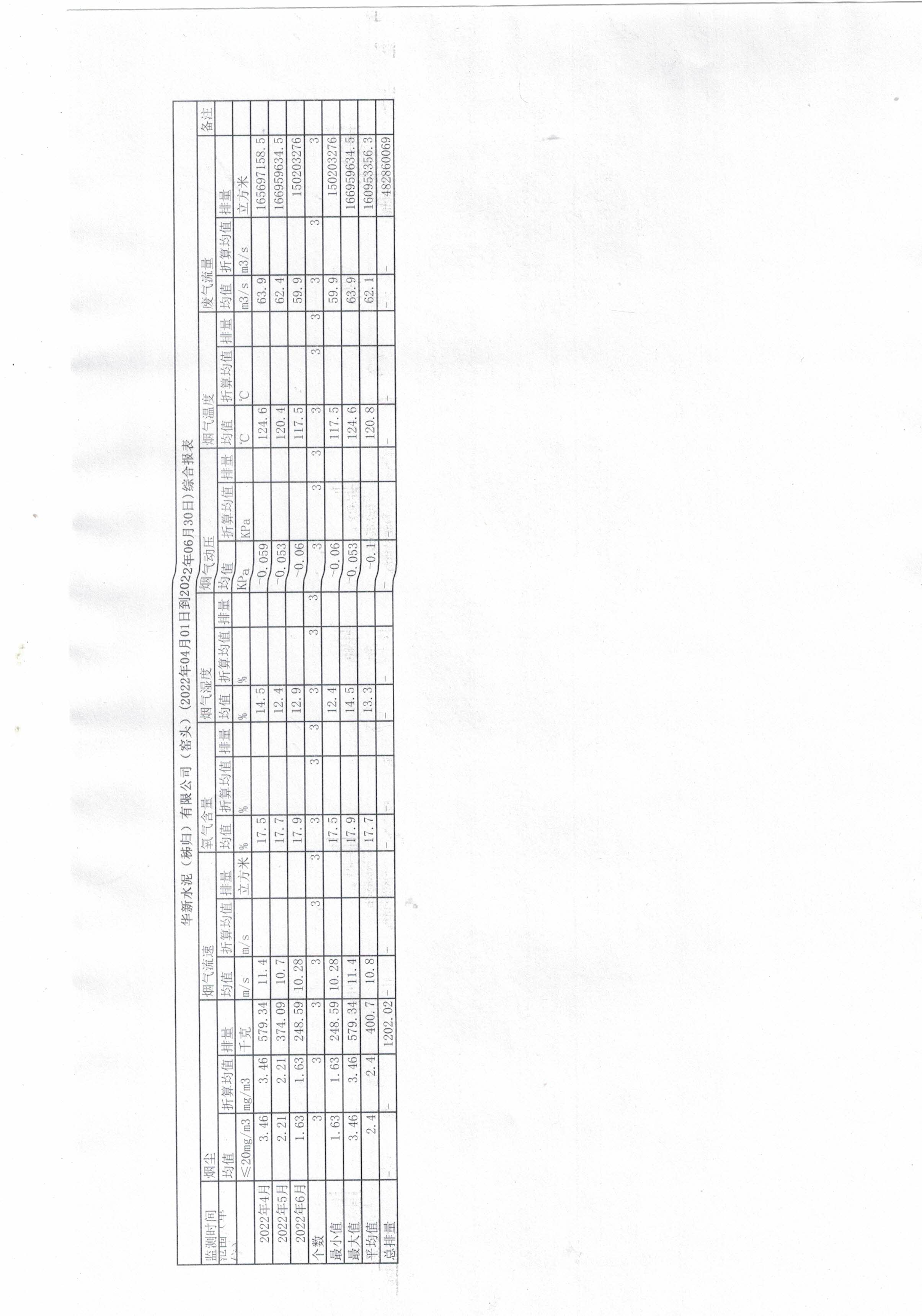 6.華新水泥(秭歸)有限公司-窯頭(2022年04月01日到2022年06月30日)綜合報表